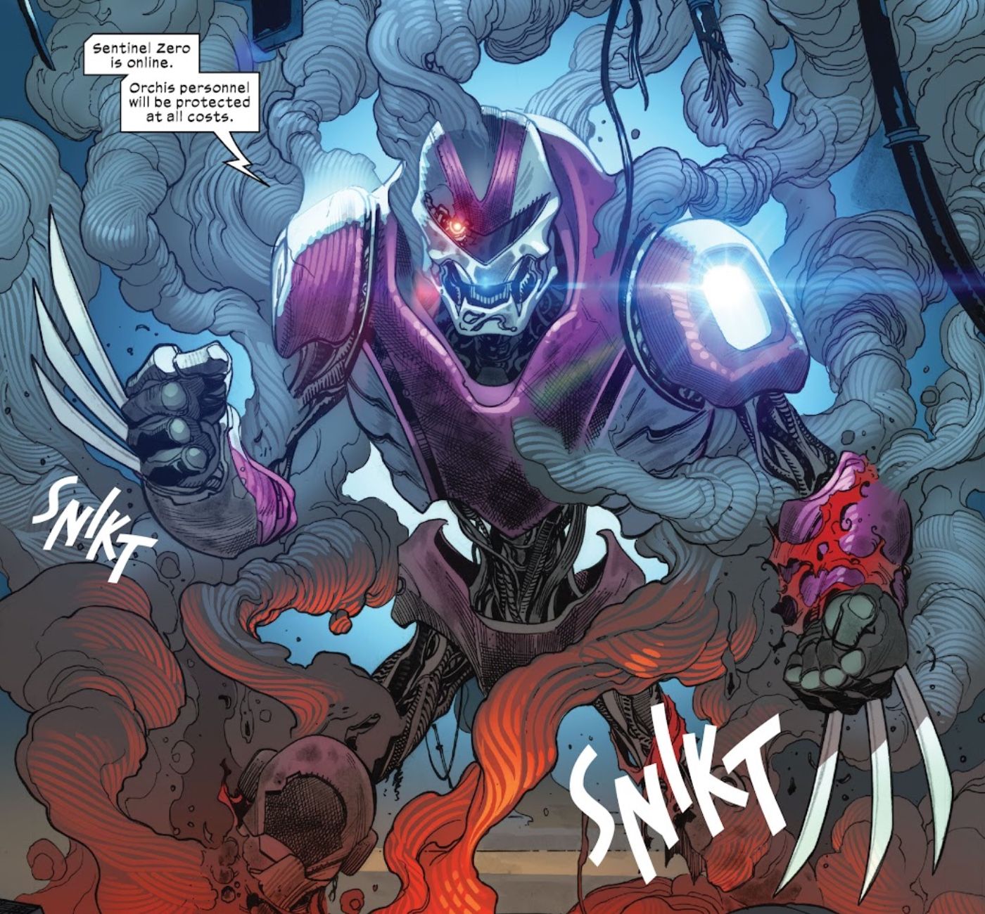 Tanto los X-Men como sus fanáticos ya han visto a los innumerables Sentinels asesinos de mutantes desarrollados alrededor de los esqueletos de adamantium que dejó Wolverine. Infierno # 1 de Jonathan Hickman, Valerio Schiti, David Curiel y Joe Sabino describe la decimosexta incursión de Krakoan en la base de Orchis, que nuevamente termina en la derrota y la muerte de Wolverine y sus aliados de X-Force a manos de Nimrod. Se muestra que Orchis se aferra a los esqueletos de Logan para un día lluvioso. Años más tarde, finalmente han puesto su reserva de cadáveres de Wolverine para usar en forma de Sentinels altamente peligrosos que amenazan no solo a Logan, sino a todo lo que queda de la raza mutante después de los trágicos eventos de la Hellfire Gala 2023 de los X-Men.
