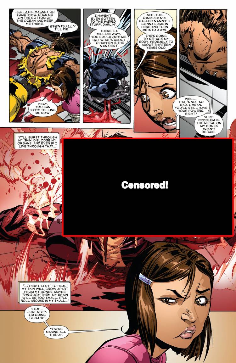 Como explica Wolverine, si su cuerpo redujera la edad al de un niño de 13 años, su esqueleto de metal seguiría siendo el mismo. Esto significa que, horriblemente, el esqueleto de Wolverine esencialmente explotará fuera de su cuerpo. Sus órganos tendrán que intentar sanar alrededor de sus huesos irrompibles, y posiblemente se convierta en sólo un charco de carne y órganos sin esqueleto, con su cerebro atrapado dentro de un cráneo demasiado grande para él. Es una situación verdaderamente de pesadilla de imaginar. Si Wolverine sobrevive, será una pesadilla que nadie debería sufrir.