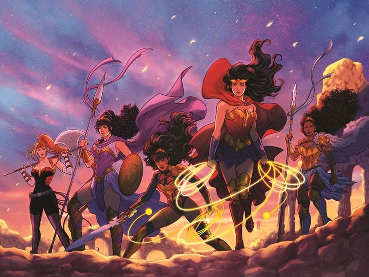 Becky Cloonan y Michael Conrad han estado trabajando en Mujer Maravilla (2016-) durante el inicio de la Frontera infinita era. Vita Ayala y Stephanie Williams están a punto de lanzar la nueva serie, Nubia y las Amazonas, el 19 de octubre. Joëlle Jones ha encabezado Chica Maravilla, presentando a Yara Flor, la Amazon más nueva de DC. Jordie Bellaire ha estado trabajando en Wonder Woman: Las aventuras de la joven Diana – volviendo a contar las experiencias de la infancia de la princesa amazónica de Themyscira. Cada uno de estos libros ha estado agregando mucho a la tradición de Amazon y al heroísmo de Wonder Woman a medida que se propaga a nuevos héroes, y todo llegará a un punto crítico en “¡Una lucha por el poder que redefinirá el futuro de todas las tribus amazónicas!”
