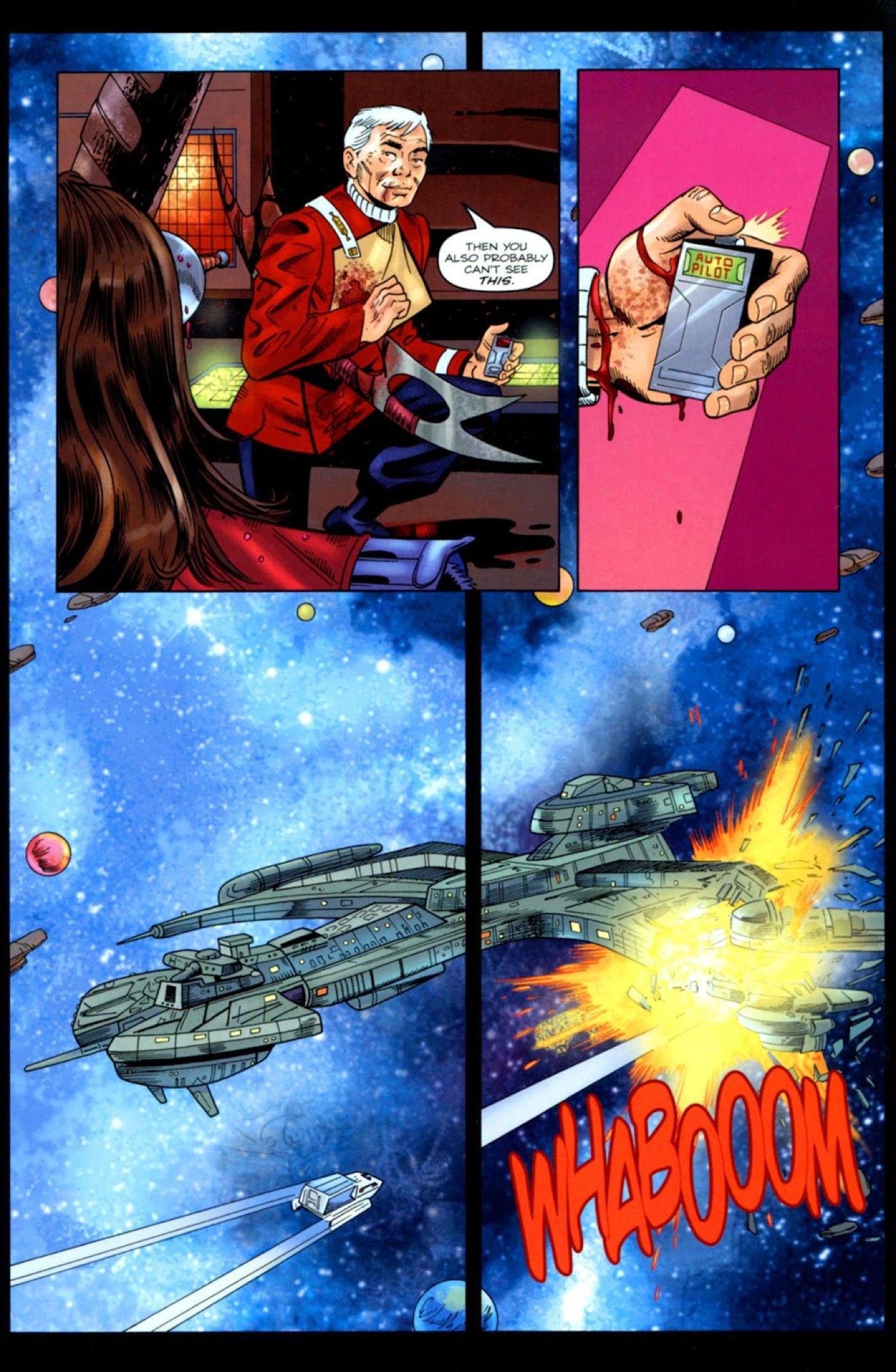 “/> Para no quedarse atrás, Sulu pone la lanzadera en piloto automático, embistiéndola contra una de las góndolas de la nave de Worf, destruyéndola y poniendo fin a su reinado sediento de sangre.