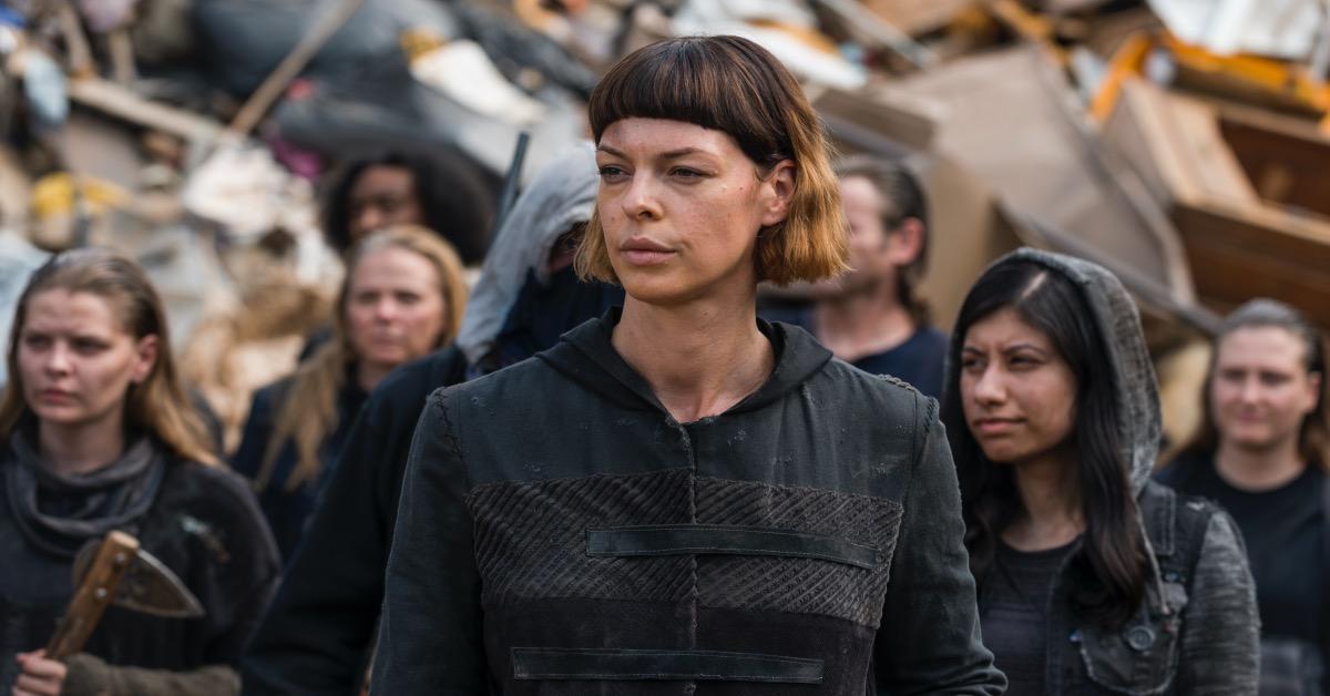 Seis años y un fatídico viaje en helicóptero después, Jadis es el suboficial Stokes del ejército de la República Cívica en la temporada 2 de The Walking Dead: Mundo más allá. En una conversación con su mentora militar, la sargento del personal de CRM Jennifer “Huck” Mallick (Annet Mahendru), Jadis recuerda cómo “creó una pequeña sociedad con bastante rapidez” antes de llegar a la República Cívica.