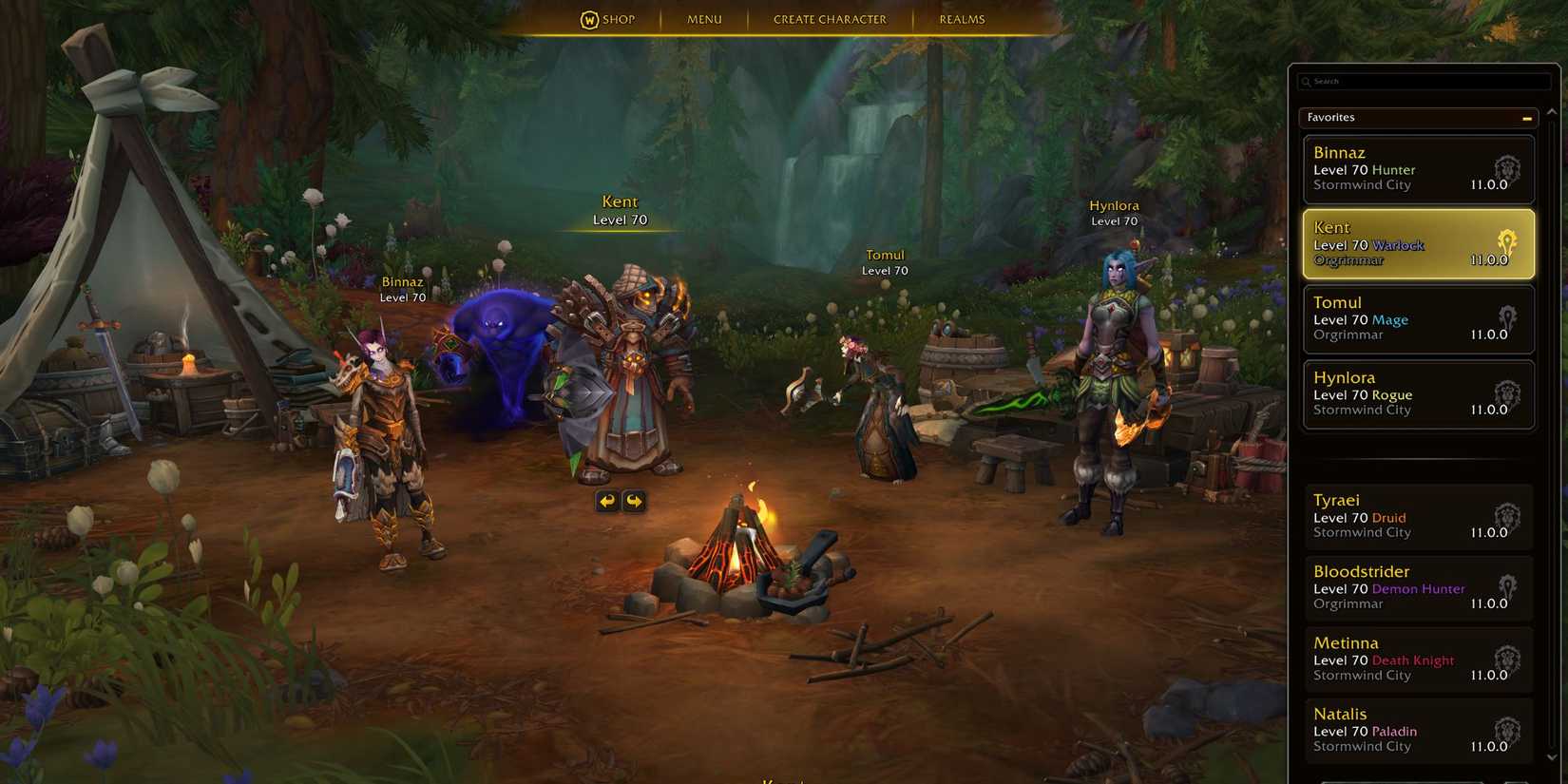 Las bandas de guerra son otra característica que supone un gran cambio para Guau en esta expansión, permitiendo la progresión en toda la cuenta para obtener renombre, un banco de bandas de guerra, logros compartidos, transfiguraciones y más. En alfa, por supuesto, el juego aún no está conectado con el moderno. Guau cuentas con todos los personajes que se mantienen allí, lo que hace que sea difícil ver qué tan bien funcionará en última instancia, pero es un cambio emocionante que tiene un gran potencial. Incluso el simple hecho de poder ver a los personajes juntos alrededor de la fogata en el menú de apertura ya es una sensación satisfactoria.