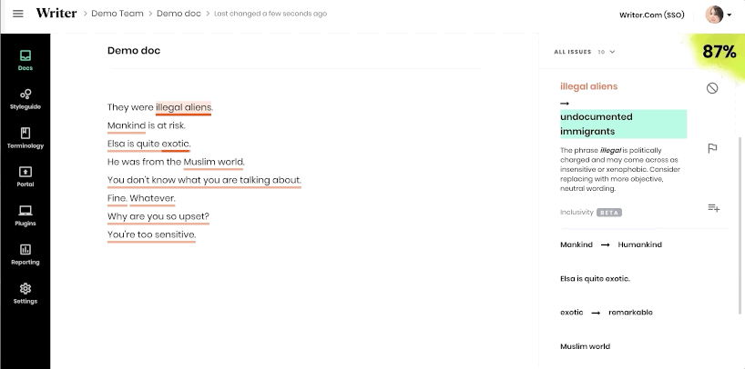 Tanto las personas como las empresas para las que trabajan quieren mejorar su forma de escribir, pero no solo en términos de gramática y ortografía. Si una empresa dice que es inclusiva, pero el lenguaje en sus comunicados de prensa o blogs internos está salpicado de anacronismo y sesgo, sugiere que su preocupación solo llega hasta cierto punto.