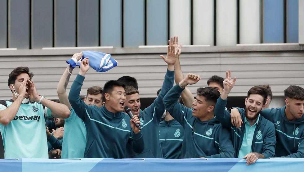 , con poca continuidad en los onces de Vicente Moreno. Pero el delantero del Espanyol, implicado como el que más con la causa perica, ha disfrutado a lo grande la celebración del ascenso, atado el pasado sábado en Zaragoza.