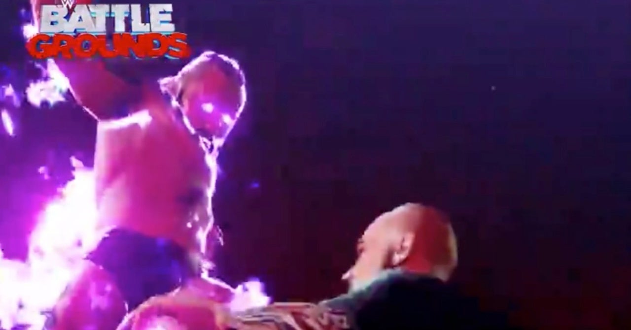 Los movimientos de Aleister Black y Baron Corbin no son tan locos, pero se ven igual de hábiles, ya que Black está envuelto en un aura de energía púrpura mientras entrega una Masa Negra asesina a Corbin mientras Corbin está rodeado de energía verde y lanza un Fin de Dias.