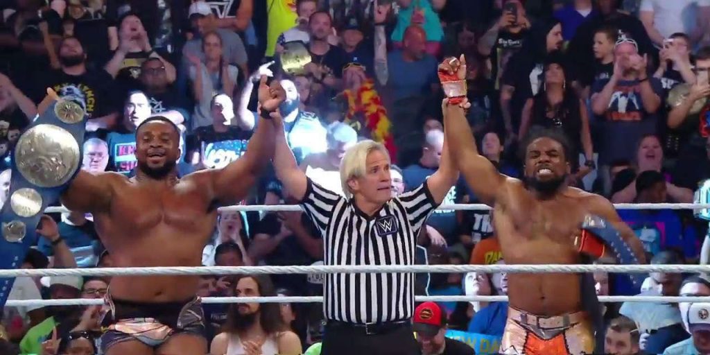 Esto ha dejado a Big E y Woods para centrarse en la división de equipos de etiqueta como un dúo. Si bien una de las grandes ventajas de New Day siempre ha sido tener tres miembros para elegir tanto para competir como para defender los diversos títulos de equipos de etiqueta que han tenido, ahora está claro que E y Woods son un tándem tan formidable como ellos mismos. con Kingston en la mezcla. El nuevo día pasado celebró el Bofetada Tag Team Championship en el otoño de 2018, perdiéndolos ante The Bar, Sheamus y Cesaro. Esta noche, recapturaron los títulos.