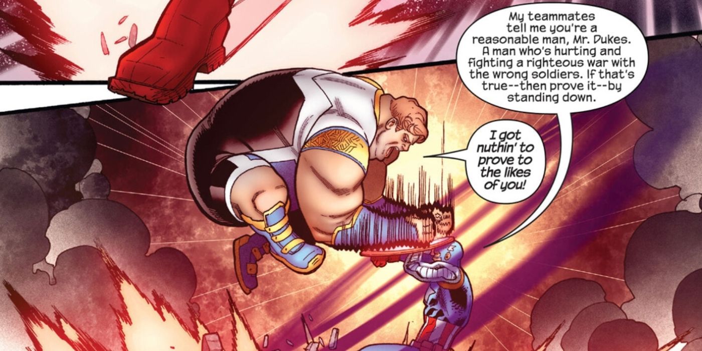 Después de que Blob descubrió que lo habían engañado para convertirlo en un héroe mutante en contra de su voluntad, se volvió loco y comenzó a atacar a sus “compañeros de equipo”. Honestamente, Blob tenía todo el derecho a estar enojado, pero comienza a perder la simpatía cuando lo que le molesta es que lo obligaron a ser un buen tipo.