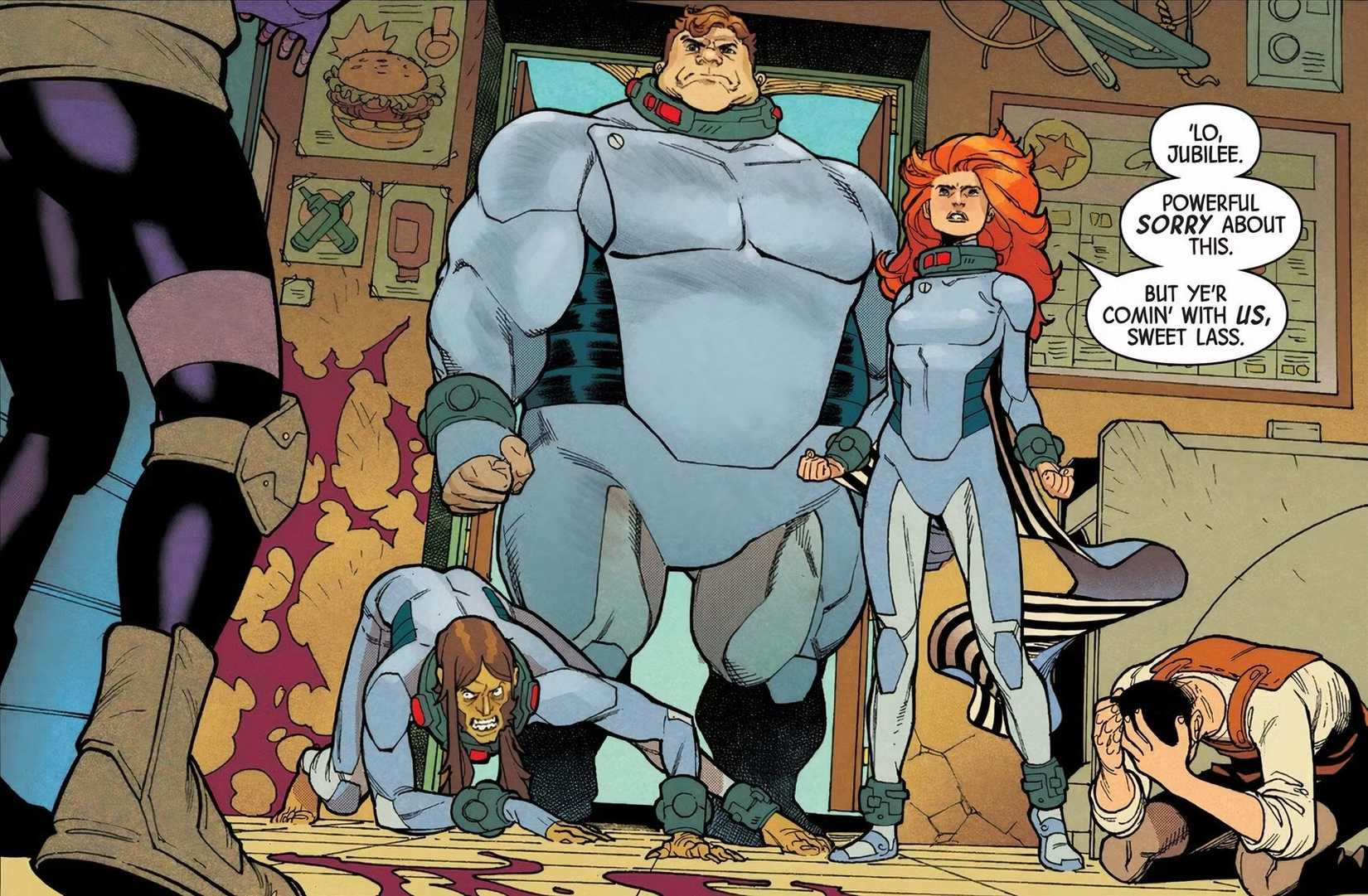 X-Men asombrosos #6, escrito por Gail Simone, con arte de Javier Garrón, muestra a Jubilee siendo emboscada y, aunque se defiende del ataque, es derrotada por dos ex X-Men, Siryn y Blob.