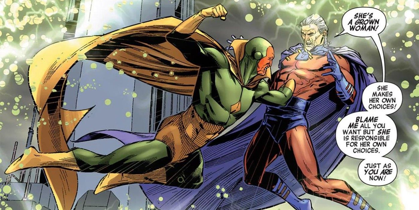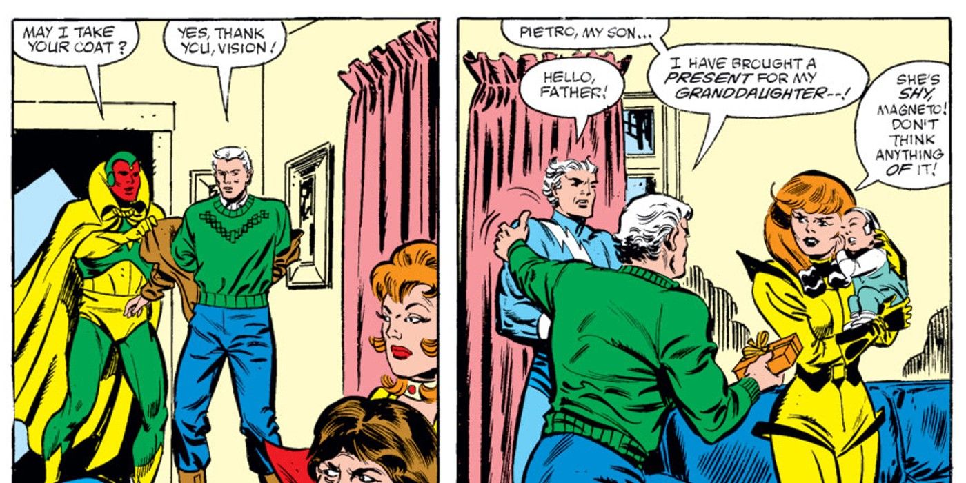 El atrevido y amado matrimonio entre la Bruja Escarlata y el Sintezoide Visión sigue siendo un importante tema de conversación para los fanáticos, a pesar de que no han tenido una relación sentimental en años. Su romance secreto fue un shock para muchos héroes del Universo Marvel. Sin embargo, una vez que Magneto dejó de ser malvado e intentó hacer las paces con Wanda y Pietro, aceptó la Visión como su yernoIncluso asistió a una famosa cena familiar de Acción de Gracias en 1986. Visión y la bruja escarlata #6. Aún así, la relación entre Vision y Magneto se ha mantenido tensa, y los dos lucharon entre sí varias veces a lo largo de los años.