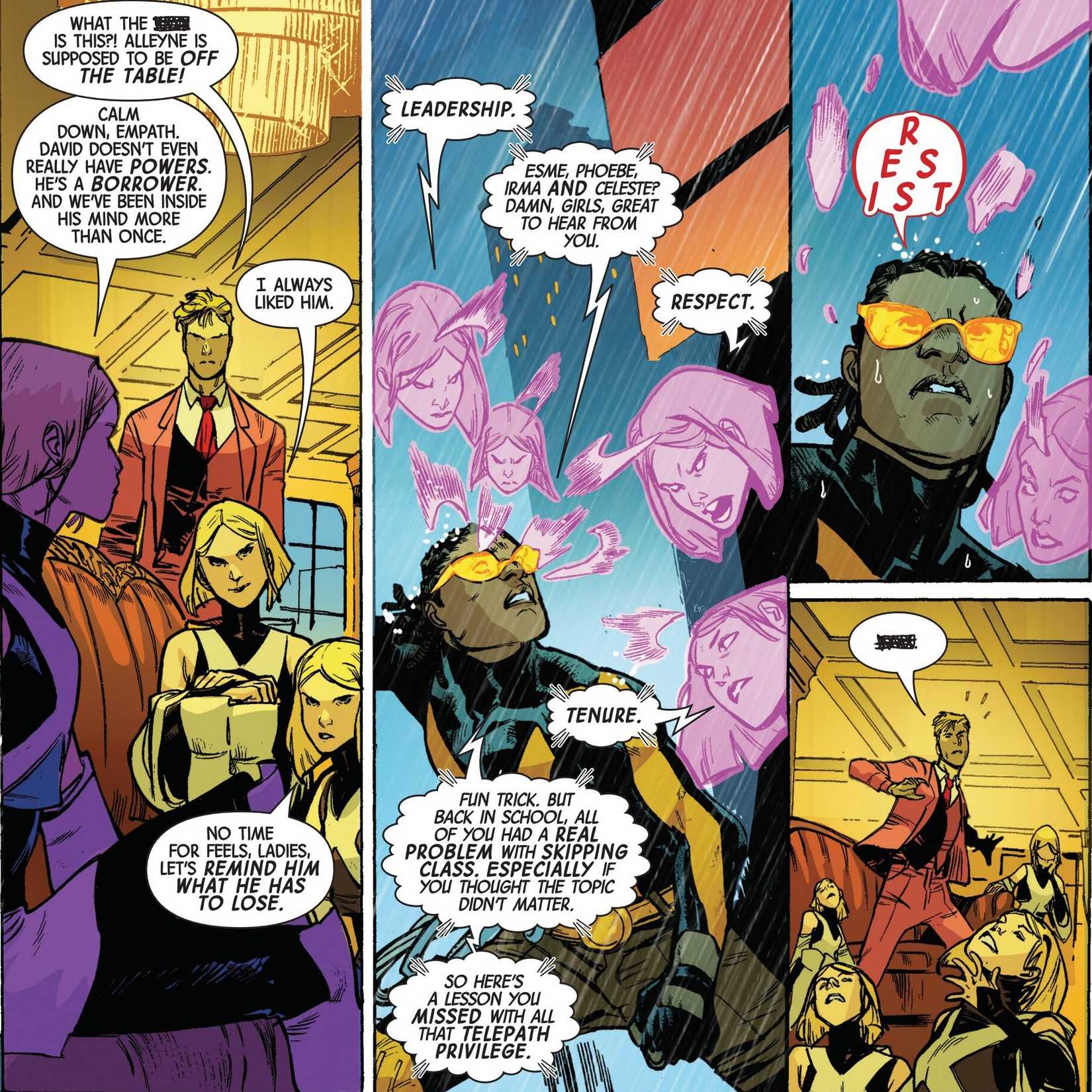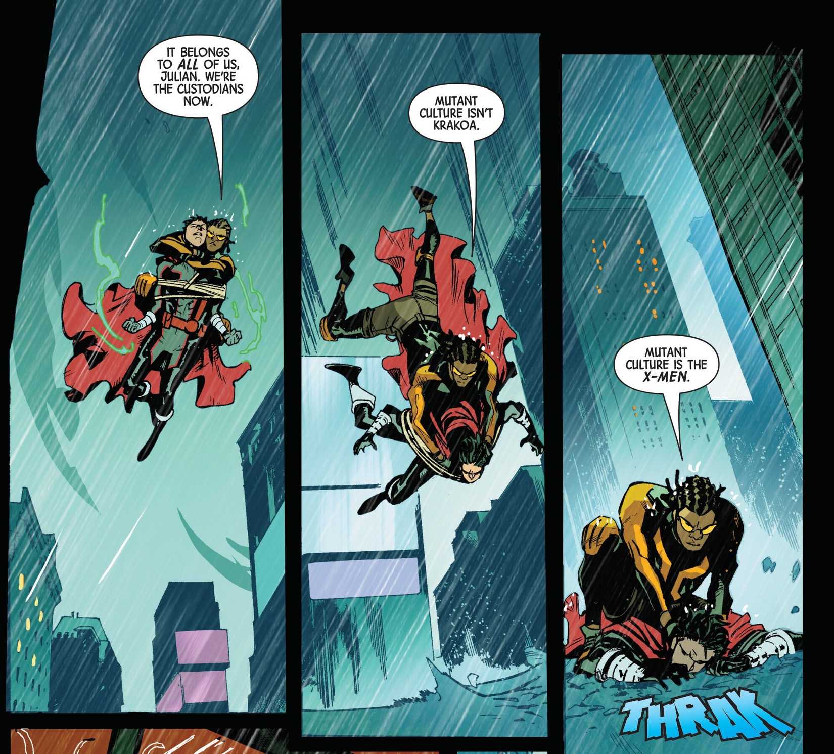 Cuando David Alleyne vuelve a asumir su papel de Prodigy, todo vuelve a él. Es atacado por los Stepford Cuckoos y recuerda cómo solían faltar a clases y se perdían la lección sobre el protocolo del triángulo rojo, por lo que puede resistir fácilmente su ataque psíquico. Luego derrota por sí solo al Krakoan. Como dice Prodigy: “La cultura mutante no es Krakoa. La cultura mutante son los X-Men.” Incluso sin tierra propia, siempre estarán X-Men.