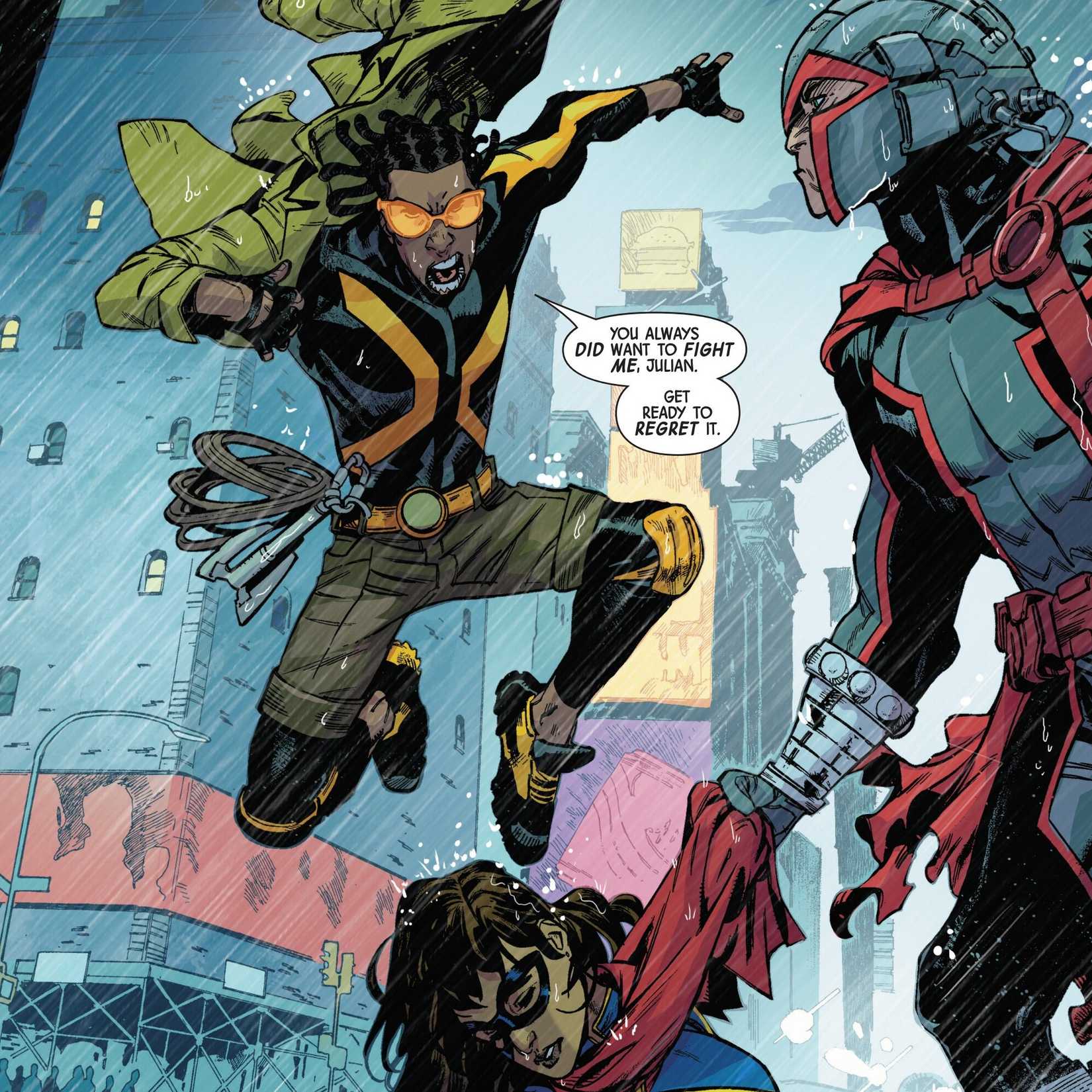 La era X-Men “From the Ashes” tiene que ver con los mutantes que disfrutaron de una vida en Krakoa y se reajustaron a sus vidas nuevas o antiguas en el mundo entre los humanos. NYX se centra específicamente en un grupo de mutantes que deciden llamar a la ciudad de Nueva York su hogar en lugar de unirse a un grupo oficial de X-Men como Rogue o Cyclops. Mutantes como Prodigy intentan dejar atrás sus días de X-Menmientras que Ms. Marvel está prosperando en su nueva identidad como X-Man, pero como de costumbre, se cazan mutantes. Como dice Prodigy, esconderse entre los humanos es simplemente vivir con miedo.