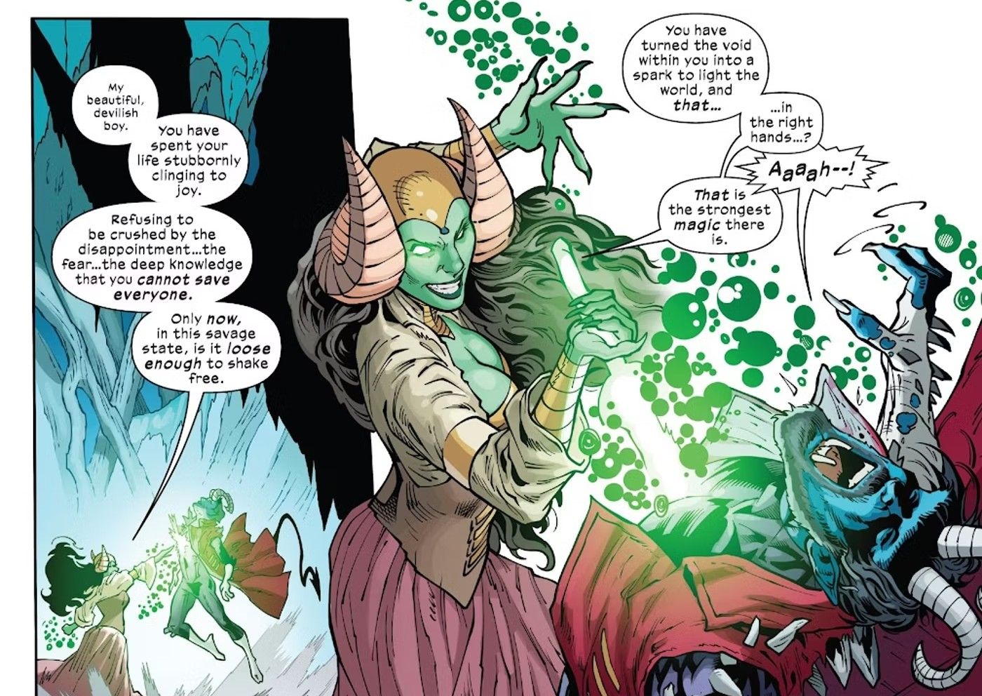 Finalmente, las espadas son uno de los Arcanos Menores mayores en la magia cartomántica y juegan un papel importante en la tradición mística de Marvel. Nightcrawler’s Hopesword se une a una larga lista de espadas mágicas empuñadas por héroes de Marvel, incluidas Magik’s Soulsword, Black Knight’s Ebony Blade, Valkyrie’s Dragonfang y Faiza Hussain’s Excalibur.