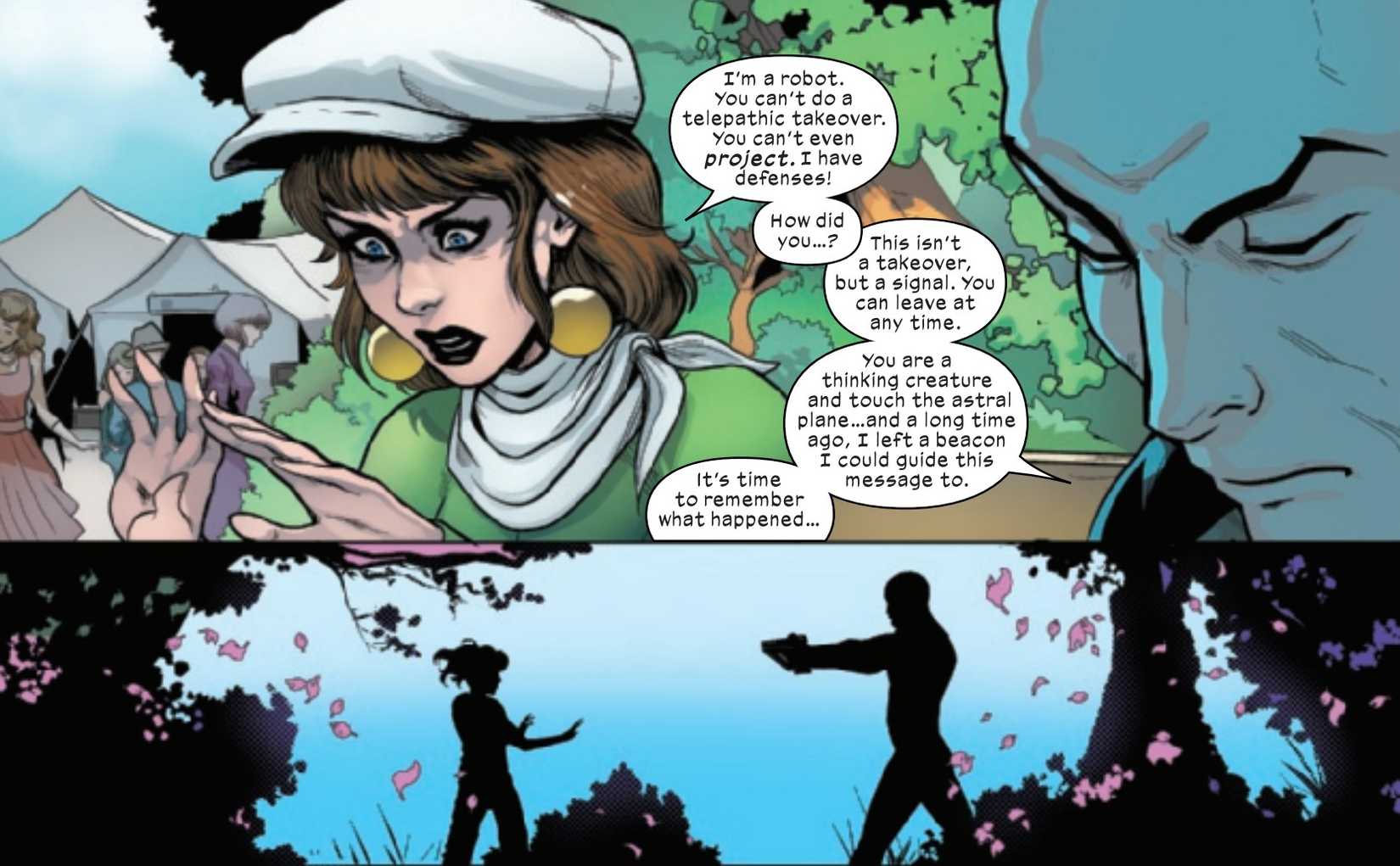 Era Krakoan, Marvel explora la naturaleza de los poderes telepáticos de sus personajes, estableciendo que se pueden establecer conexiones psíquicas incluso con conciencia artificial. -