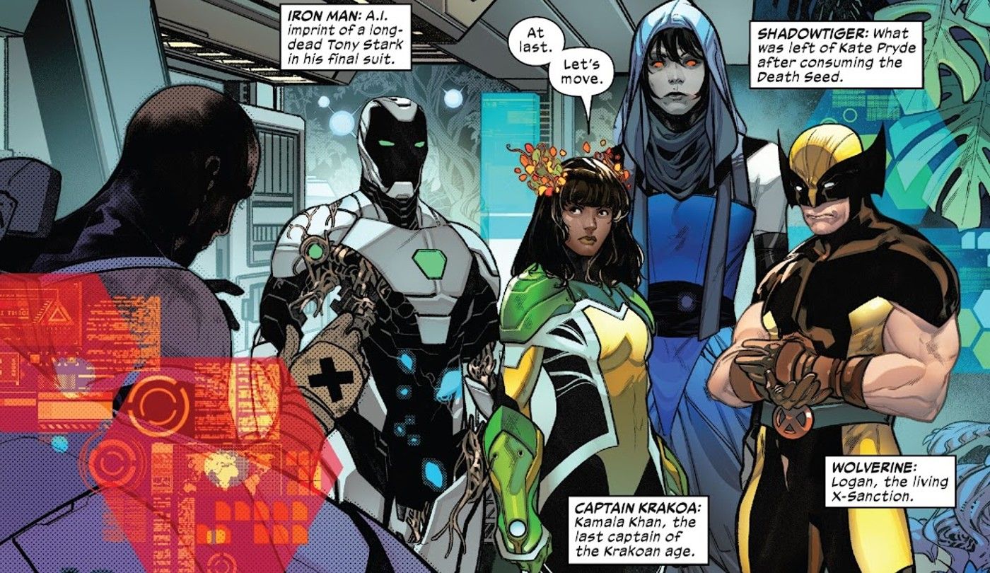 Los fanáticos ven la transformación en El ascenso de los poderes de X, que se sitúa diez años en el futuro, después de que los X-Men perdieran su batalla final definitiva contra Orchis. En ese momento, casi todos los mutantes están muertos, y solo unas pocas células de luchadores de X-Men todavía luchan para detener una toma de control de la IA. Mientras se reúne el equipo final de Synch, el Capitán Krakoa de Kamala Khan, Wolverine, una copia IA de Tony Stark y Kate Pryde, la ‘hermana pequeña’ residente de los X-Men es todo menos… Kate es una guerrera descomunal que ahora tiene el nombre en código Shadowtiger.y el problema revela que esto se debe a que consumió una Semilla de la Muerte Celestial.
