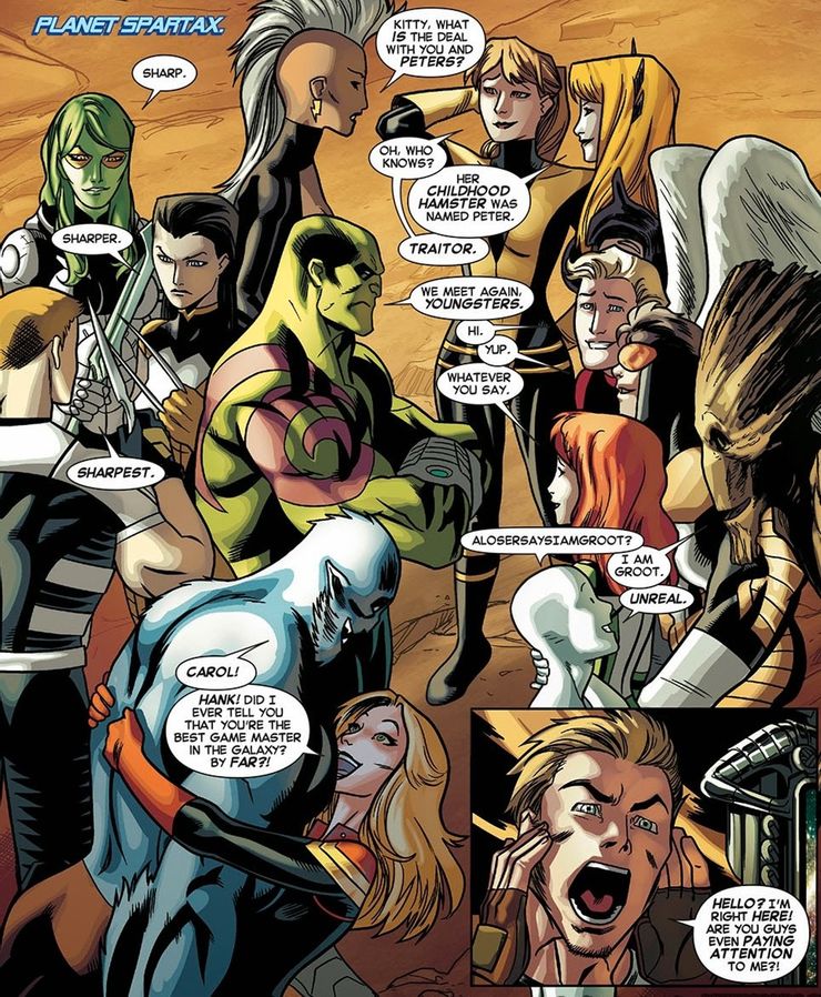La paradoja de Peter finalmente se abordó en el universo durante Guardianes de la Galaxia y X-Men: Black Vortex Alpha por Sam Humphries, Ed McGuinness y Justin Ponsor. En él, Storm le pregunta a quemarropa al futuro líder de los X-Men: “¿Cuál es el trato entre tú y Peters?Kate se ríe y se encoge de hombros como si fuera una leve coincidencia, hasta que su mejor amiga Magik revela que su hámster mascota de la infancia también se llamaba Peter.