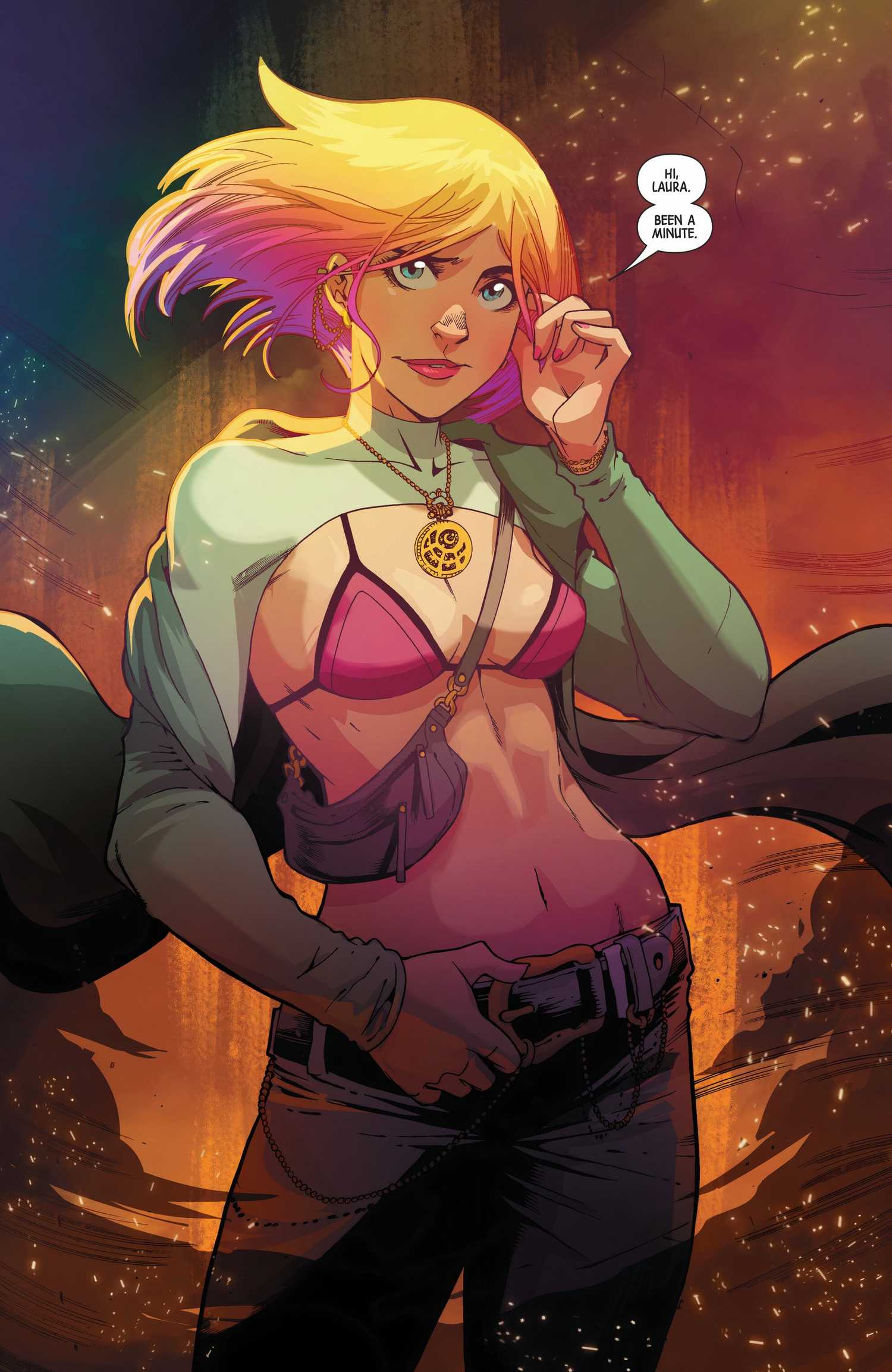 Wolverine resulta gravemente herido durante la pelea y las cosas se ven sombrías para ella cuando su amigo más antiguo, Kiden Nixon, aparece de repente para salvarla. Estoy encantado de presenciar cómo los dos se reúnen. pero también estoy un poco incómodo, porque Kiden desconoce por completo la clonación de Laura.