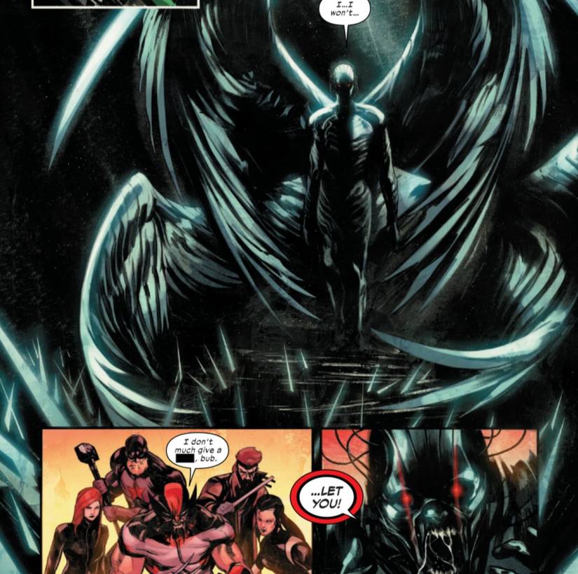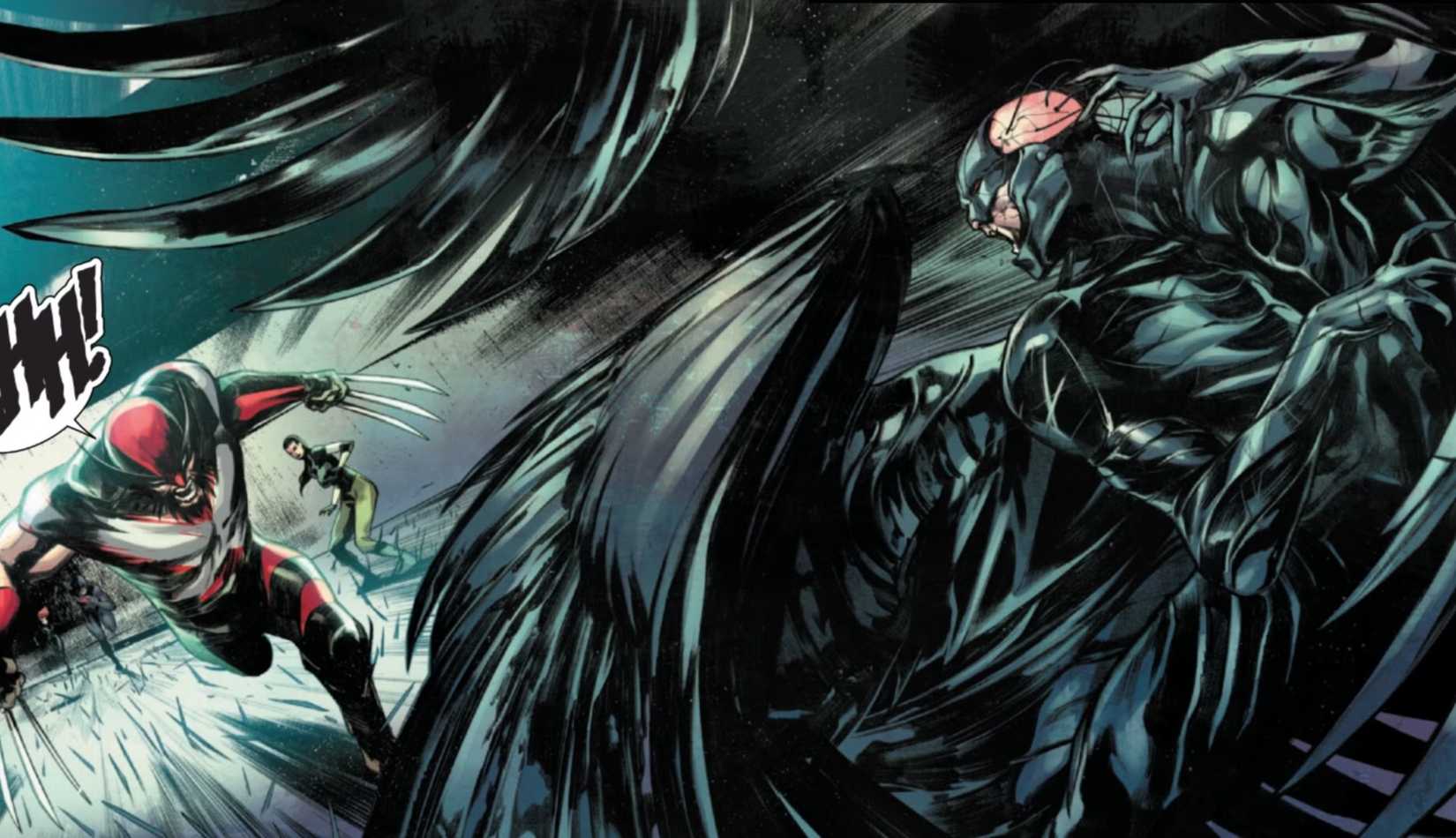 En Ultimate Wolverine #8 – De Chris Condon, Alessandro Cappuccio, Bryan Valenza y Cory Petit – El equipo intenta rescatar a Warren Worthington, el héroe fundador de X -Men conocido como Angel. Sin embargo, la villana Dirección X lo ha convertido en una monstruosa criatura. Warren tiene cuatro alas hechas de plumas con cuchillas y un traje de cuero negro con cables conectados directamente a su cerebro.