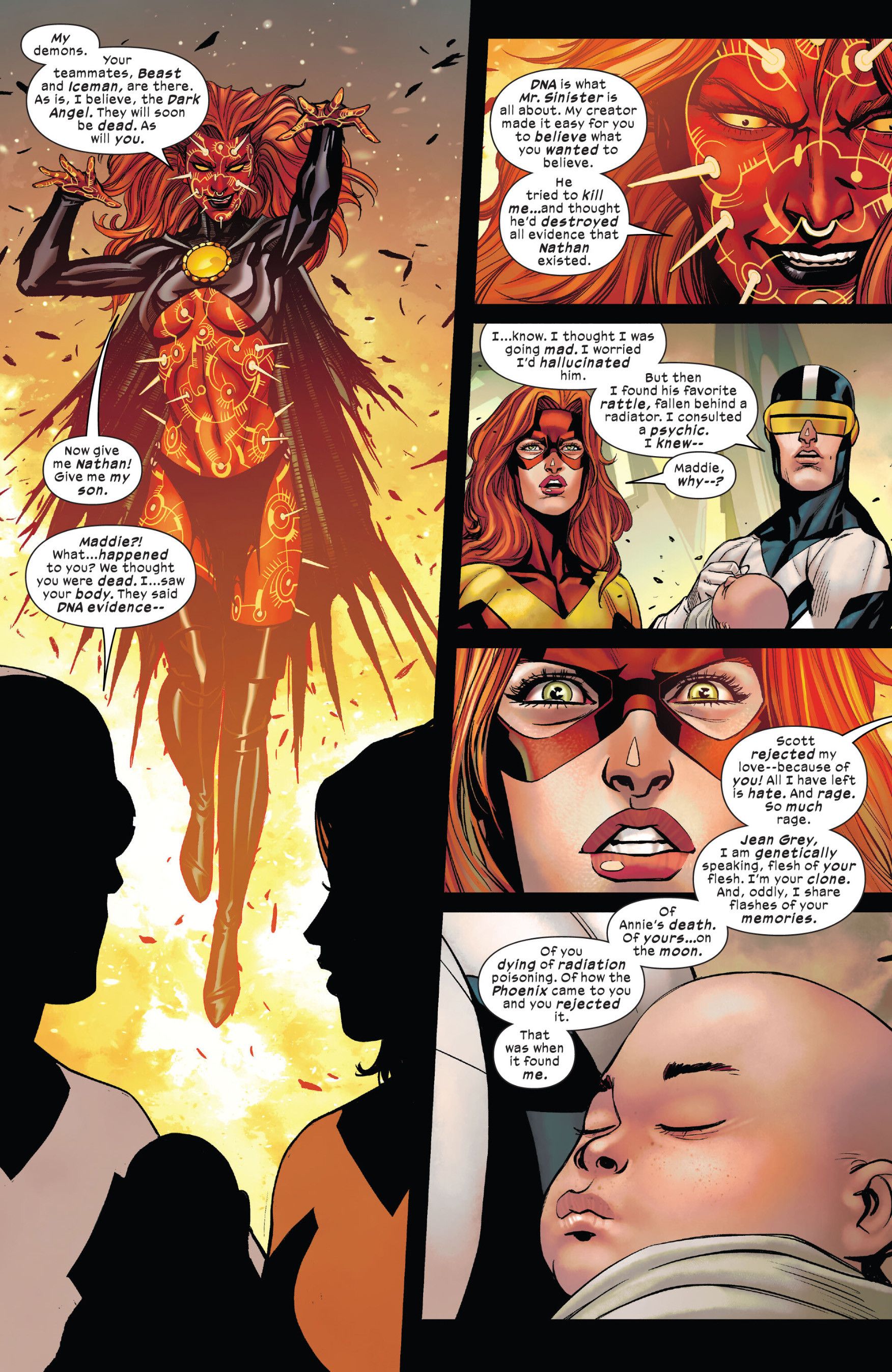 “/> Finalmente, se infecta con el virus tecnoorgánico, que aumenta sus poderes a niveles divinos. Luego ataca a la verdadera Jean Grey, quien solo se salva cuando otras variantes de Gray de toda la línea de tiempo se la llevan.