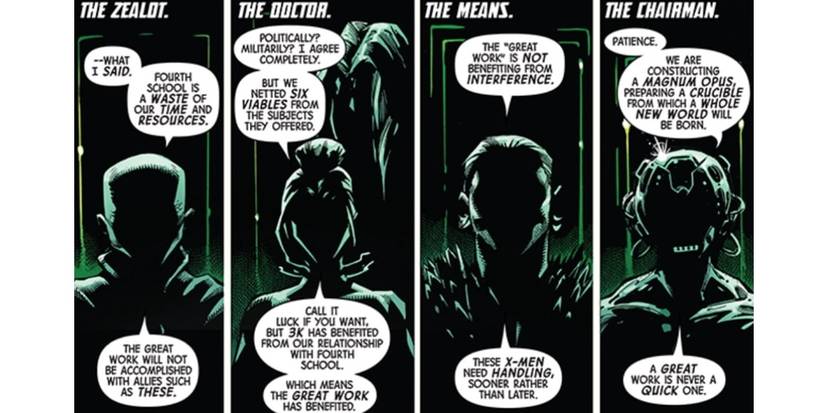 Cassandra Nova fue la primera en revelarse, cuando el grupo comenzó a actuar como una espina en el lado de los X-Men, y eso solo es una mala noticia. Nova ya estaba detrás de la masacre de Geneshanque sigue siendo uno de los eventos más devastadores de Mutantkind. Wyre, Astra y Joseph también son entidades conocidas, pero el presidente sigue siendo un misterio.
