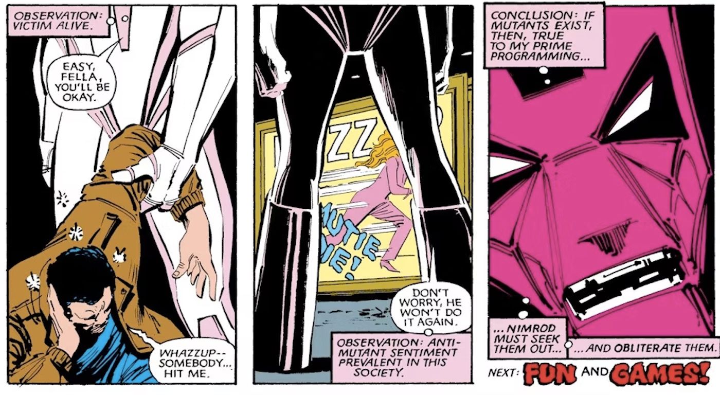 - La estrategia anterior de los X-Men de evitar la creación de Nimrod fracasó, y ahora deben enfrentarla de frente en un enfrentamiento definitivo.