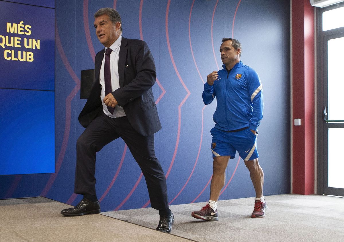 “He visto el equipo muy bien. Creo que iremos poco a poco. Es difícil cambiar las cosas en poco tiempo. El estilo es innegociable y tenemos que picar mucha piedra. Estamos encontrando la fórmula para tener más presencia y ser más protagonistas con el balón. Al final, tiene que entrar la pelotita”, aseguró Barjuan, que se sentó junto a Laporta a escuchar las explicaciones del adiós de Koeman. En la sala de prensa de la Ciudad Deportiva estaba presente toda la cúpula del fútbol profesional azulgrana: Mateu Alemany (director de fútbol), Ramon Planes (director deportivo), Rafa Yuste (vicepresidente deportivo) y Ferran Reverter (director general). No estaba, sin embargo, Jordi Cruyff, que según el organigrama del club es director de scouting internacional.
