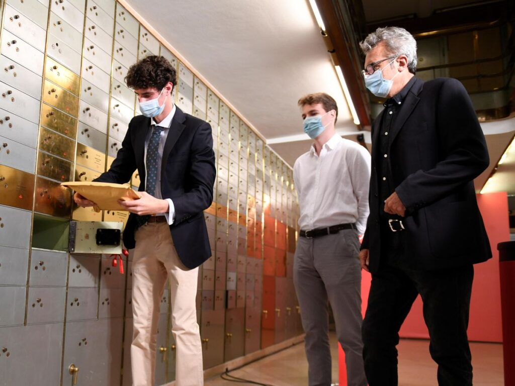 La caja ha sido abierta por sus nietos Fidel y Jorge García Berlanga. Junto a ellos, el director del Instituto Cervantes, Luis García Montero, y el presidente de la Academia de Cine española, Mariano Barroso. El legado depositado en la caja se ha trasladado, acompañado por una banda valenciana de música, a la exposición que este miércoles inauguró la Academia de Cine, Berlanguiano. Luis García Berlanga (1921-2021). Su nieto Jorge habló, antes de descubrir el secreto, “del duende” de su abuelo, inconformista y libre.