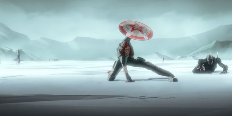 Después de que Clint Barton y Natasha Romanoff sobreviven al holocausto nuclear que Ultron provocó en “¿Y si … Ultron Won?”, La pareja se infiltra en los archivos de la KGB para tratar de encontrar algo que pueda derrotar a la IA rebelde. Hay un momento conmovedor en el que Hawkeye mira desde su avión al planeta devastado, probablemente pensando en el destino de su familia abajo.