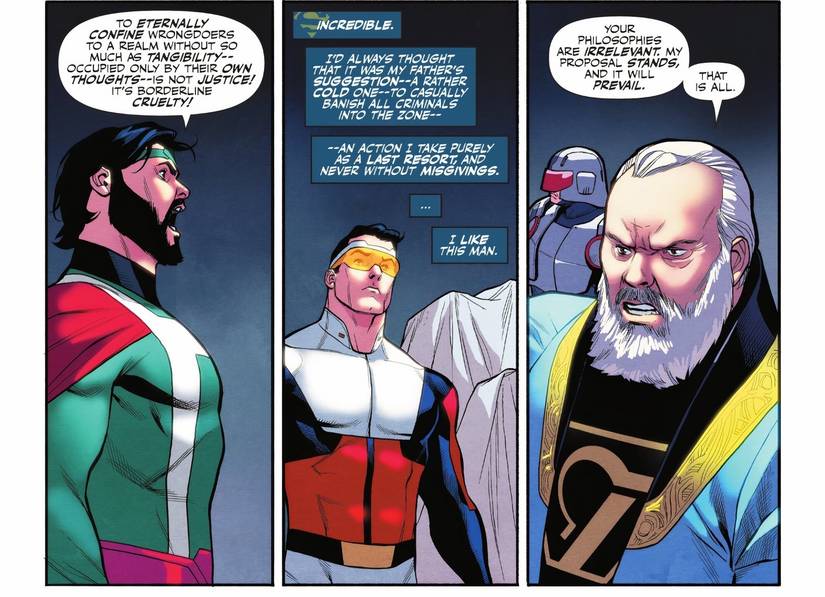 En cambio, era un kryptoniano celoso llamado Ro-Zan. Furioso porque Lara eligió a Jor-El en lugar de él, Ro-Zan decide conformarse con robar sus inventos, lo que hace que Ro-Zan tome el Proyector de la Zona Fantasma y sugiera usarlo para los prisioneros. Este momento toma completamente a Superman por sorpresa y sólo aumenta aún más su fe en su padre – a diferencia de casi cualquier momento en el que Batman se haya encontrado con sus propios padres.