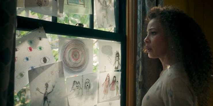 Los dibujos de Sammy eran perturbadores por derecho propio, pero cuanto más aprende el espectador sobre la propia historia de Taissa, peor se pone. Mirando hacia atrás en las imágenes después de que el hombre sin ojos se presenta en Chaquetas amarillas episodio 3, se vuelve obvio que muchas de las figuras en los dibujos tienen los ojos oscurecidos, algunas con líneas extrañas a su alrededor, y una imagen es una serie de ojos. Esto, combinado con la extracción de un ojo a la muñeca de Sammy al final del episodio, sugiere una conexión concreta entre el trauma de Taissa cuando era niña y las experiencias de su hijo, Sammy. Dado que Chaquetas amarillas parece estar arraigada en la cruda realidad, Taissa de alguna manera transmitir su trauma a su hijo tendría cierto sentido. Esta teoría flaquea un poco, ya que requeriría que Sammy conociera las experiencias de Taissa. Si bien podría haber escuchado a Taissa contarle a Simone sobre el hombre sin ojos y alguna versión de lo que sucedió en el desierto, Taissa ha tendido a comportarse de una manera más cautelosa, lo que hace que esto sea poco probable.
