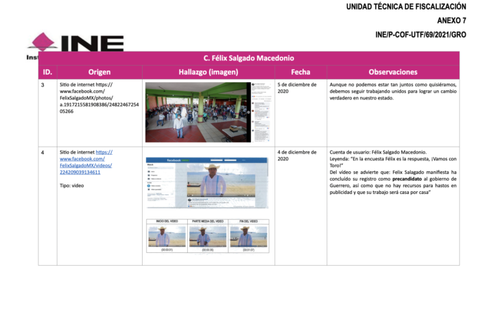 Sin embargo, según pudo constatar Aristegui Noticias, existe un listado de imágenes de la propia cuenta de Facebook de Salgado Macedonio donde se enlistan sus actividades proselitistas antes de que se convirtiera en candidato de Morena.