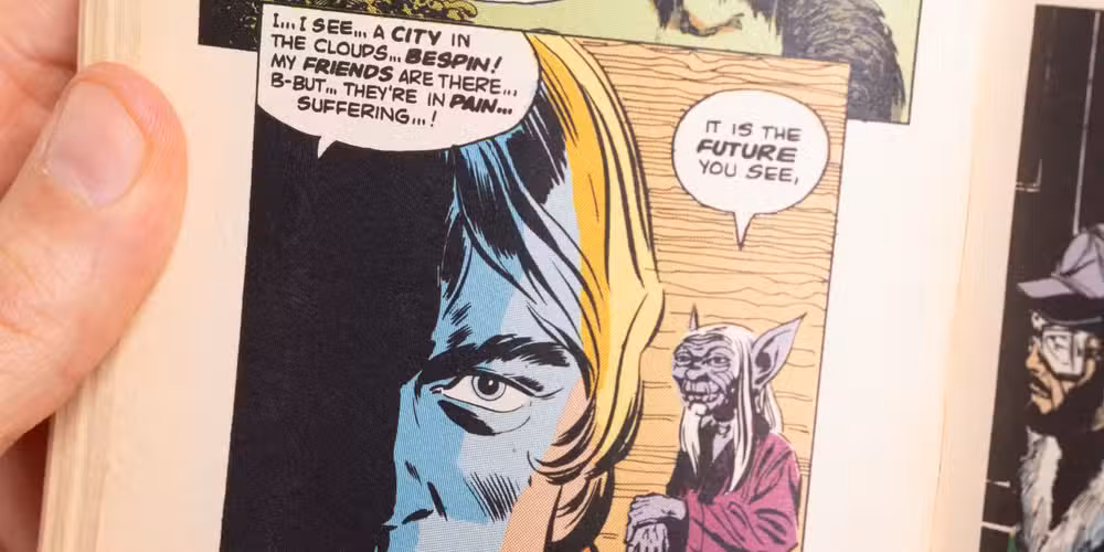 Según un artículo en el guardián, Las primeras representaciones y descripciones de Yoda lo revelan como una criatura azul y, a veces, incluso violeta.bastante diferente del Maestro Jedi verde que todos conocemos y amamos ahora. Como solo un ejemplo, una década de antigüedad guerra de las galaxias El cómic muestra a un Yoda de piel azul hablando con Luke Skywalker dentro del El imperio contraataca línea de tiempo.