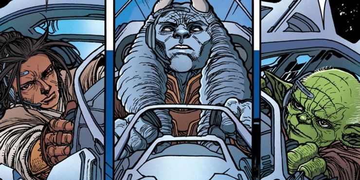 IDW Publishing ahora puede presumir de que la primera vez Yoda muestra sus habilidades de pilotaje en una batalla espacial épica que se transpira en su Star Wars: Las Aventuras de la Alta República serie de historietas. Esta es la primera vez que se ve a Yoda pilotando una nave en una pelea espacial en el canon oficial.