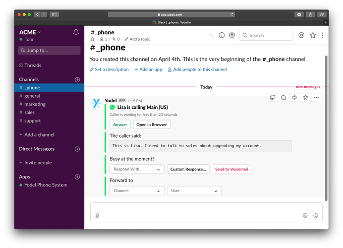 En desarrollo desde 2016 y un ex alumno de Seedcamp, la tecnología de Yodel actúa como una recepcionista de teléfonos digitales que se conecta a aplicaciones populares de chat de equipo como Slack, Zapier y Drift para ayudar a las PYMES a manejar las llamadas de manera más eficiente. La idea es proporcionar a estas pequeñas y medianas empresas una tecnología de gestión de llamadas más parecida a la que normalmente están disponibles para las grandes empresas, pero a un precio que pueden pagar.