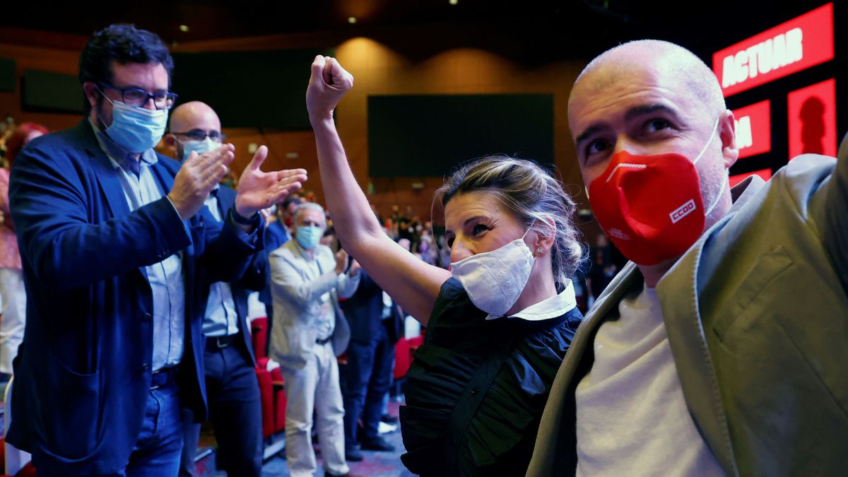 Todo el discurso de Díaz en CC OO parecía un aviso claro a su socio de Gobierno de que ella sigue adelante, y para eso ha pedido el apoyo de los sindicatos. Díaz ha garantizado varias veces ante los sindicalistas ese compromiso, en contraposición con aquellos “que dicen una cosa y hacen la otra”, otra clara referencia a sus socios socialistas. “Ahora tocan hechos y no palabras. La ciudadanía no quiere la política del que no cumple, que dice una cosa y hace la otra. En esos hechos me encontraréis. Mi compromiso con el nuevo país que avanza es total. Derogar la reforma laboral del PP es defender nuestra democracia y nuestro Estado del bienestar. Es lo que vamos a hacer. Vamos a culminar esta tarea que además está ya avanzada”, ha insistido después de recordar que la negociación ya está muy adelantada, que llevan meses de reuniones ―desde el 17 de marzo― y garantizar a los sindicatos que ese trabajo no quedará en nada.