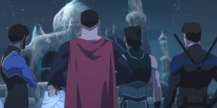 Esto llevó a una escena que corrió bajo los créditos de Justicia Jóven temporada 4, episodio 12, “Og Htrof Dna Reuqnoc!” donde Black Lightning, Superman, Tempest y Nightwing evaluaron el daño que Child había infligido en la ciudad india de Agra. Describiendo la batalla con Child como “una situación de crisis,“Superman le dijo a Black Lightning que no podían depender de villanos como el Mago que los ayudara cada vez que toda la humanidad estaba amenazada. Superman sugirió que se organizaran”un verdadero sistema de reservas de la Liga de la Justicia, “y señaló con tristeza que probablemente lo necesitarían en el futuro inmediato. Esto me recuerda la lista ampliada de héroes reunidos para Liga de la justicia ilimitada, que surgió del 2001 Liga de la Justicia serie.