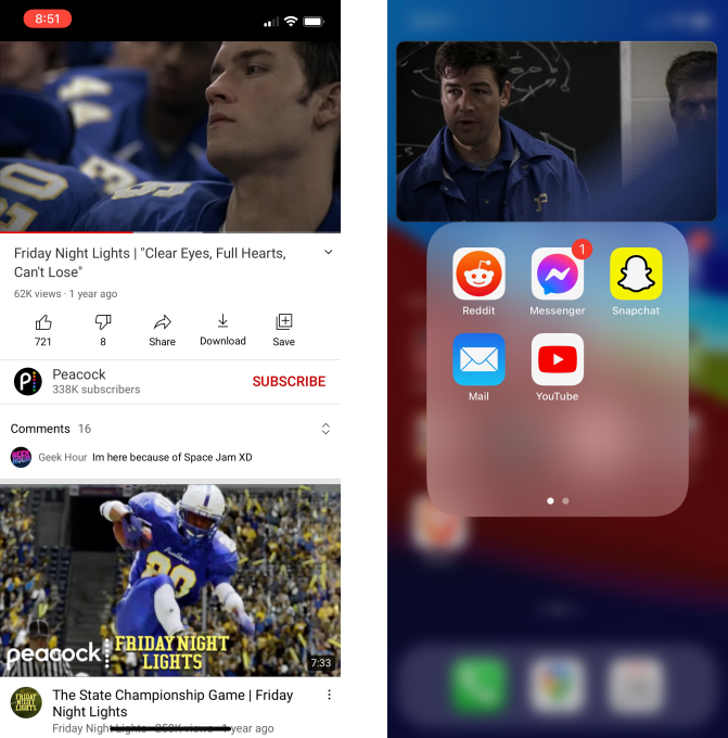 Esta función es diferente de la funcionalidad de imagen en imagen existente en la aplicación YouTube para iOS porque le permite continuar viendo un video incluso mientras navega en otra parte de su teléfono. Ya existen características similares en aplicaciones de transmisión como Netflix.