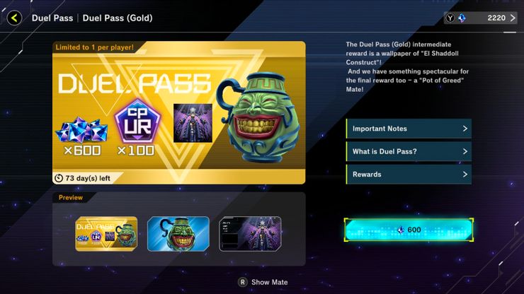 Yu-Gi-Oh! Master Duel tiene dos Pases de batalla diferentes, el Pase normal y el Pase dorado, cada uno de los cuales otorga a los duelistas muchas recompensas.