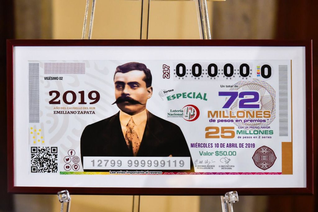 Al conmemorar el 100 aniversario luctuoso de Emiliano Zapata, López Obrador presentó un billete de Lotería, un boleto del Metro y canceló un timbre postal en honor al “Caudillo del Sur”.