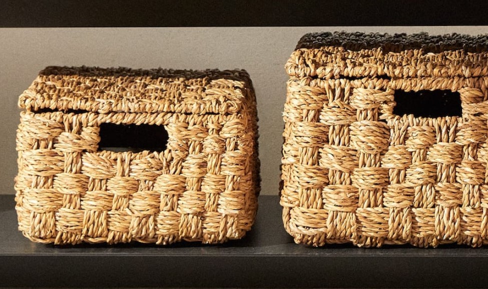 ¿Dónde dejar todo almacenado? En este caso, contamos con cajas y otros. Es el caso de la cesta trenzada. Está en dos tamaños diferentes: una cesta trenzada con tapa incluida. Es la perfecta para dejar lo que quieras y de paso poder ofrecer una decoración bien natural al espacio que desees.