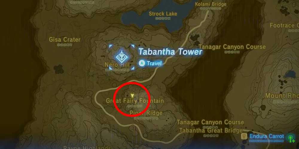 Una vez que te diriges a la región de Tabantha de Breath of the Wild’s Hyrule, Se puede encontrar una gran fuente de hadas justo después del gran puente Tabantha. Al igual que la fuente de Mija, esta estructura se puede encontrar cerca de la carretera, pero los jugadores tendrán que desconfiar de los observadores de Skys Guardian que patrullan el área.