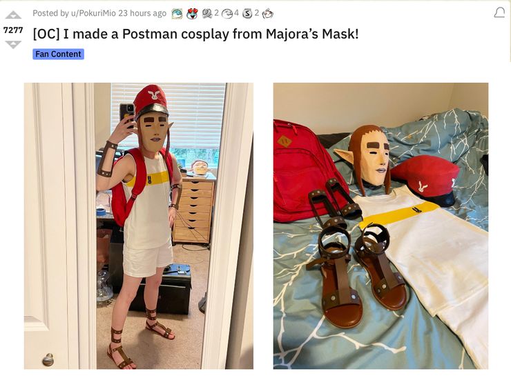El cartero es uno de los personajes más memorables de La Leyenda de Zelda: Máscara de Majora, y el usuario de Reddit, PokuriMio, recrearon recientemente la figura ultrarrápida. El cartero entrega el correo en todo Majora’s Mask’s Clock Town, negándose a abandonar su puesto incluso cuando la luna cae al tercer día. PokuriMio refleja a la perfección el guardarropa característico del personaje, completo con sus sandalias y su icónico sombrero. El cosplayer dedicado incluso hizo un esfuerzo adicional al convertir la cara del cartero en una máscara, haciendo que la imagen fuera completamente perfecta.