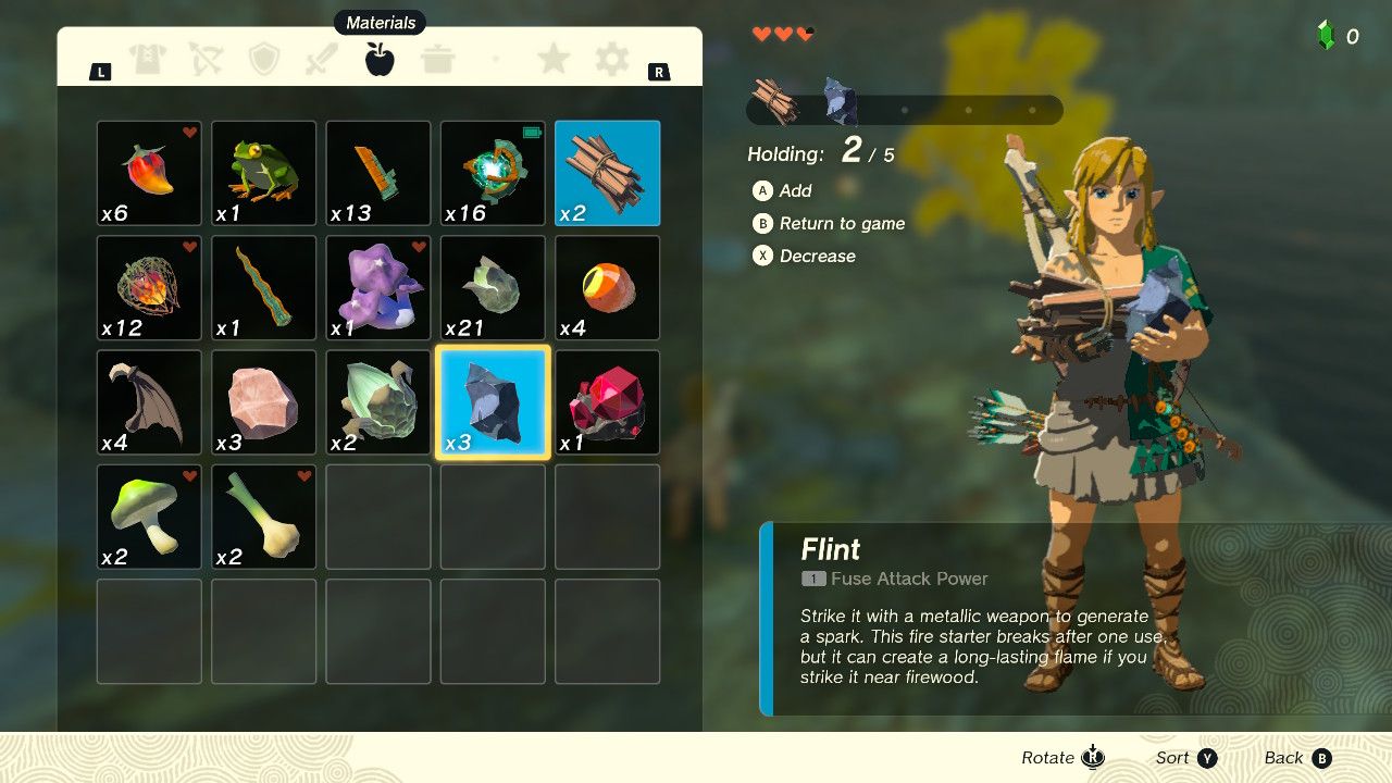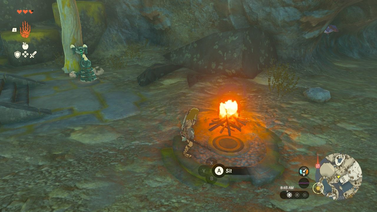 El método para crear fuego no es diferente de Zelda: Aliento de lo salvaje. Todo lo que Link necesita hacer es adquirir pedernal y madera para elaborarlo. Una vez que se recolectan esos artículos, simplemente necesita dejar caer los dos materiales uno al lado del otro yTrike ellos con un arma de metal para crear un pequeño fuego.