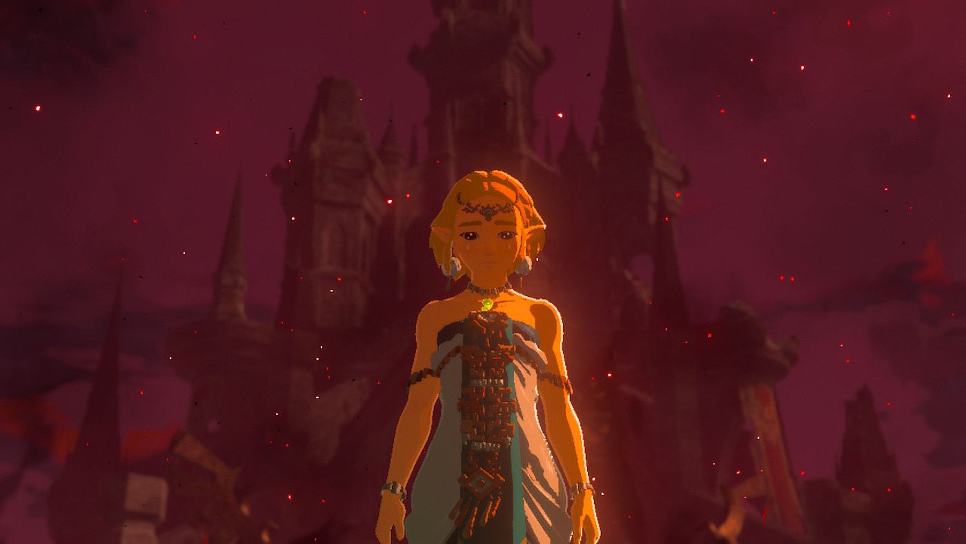 Al usar el poder de su brazo que Rauru le otorgó, Link lo extiende para concentrar la energía para curar al dragón. Sin embargo, cuando hace eso, las proyecciones espirituales de Rauru e Hylia aparecen y le dan energía extra. Esto hace que el cuerpo del dragón desaparezca, revirtiendo el hechizo y restaurando la forma hyliana original de Zelda en Lágrimas del Reino‘enviando. A lo largo del juego, se entiende que el hechizo de dragón que Zelda emprendió voluntariamente para ayudar a Link a restaurar la Espada Maestra es irreversible. Sin embargo, con la bendición de los dos fundadores del reino, se deshace.