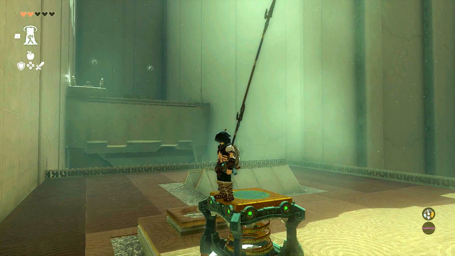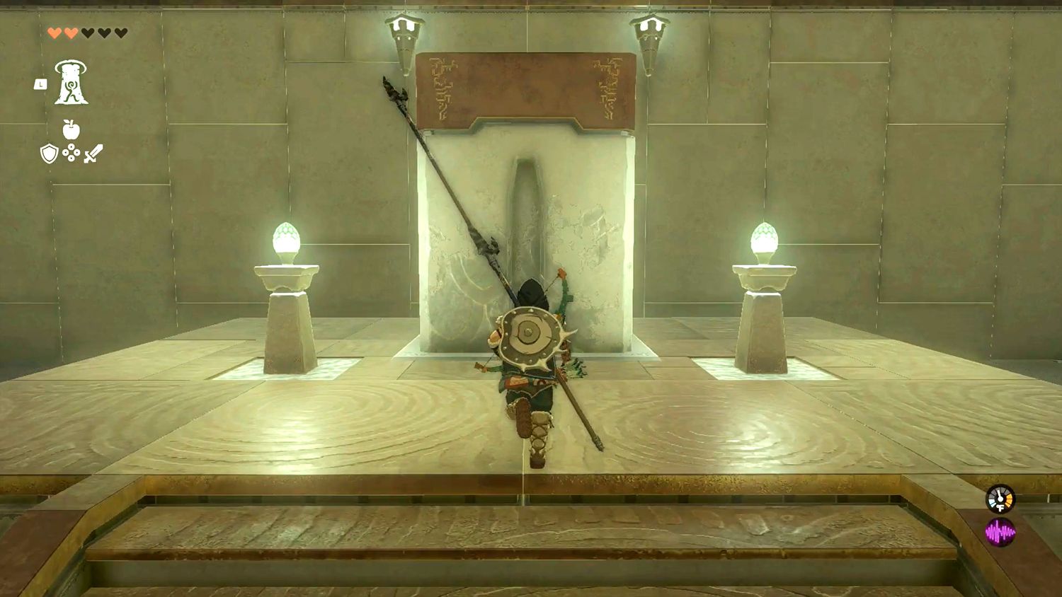 Aquí, los jugadores encontrarán un resorte, que se activará cuando Link lo golpee con su arma. Párate encima del resorte y golpéalo para lanzar a Link al siguiente piso. En el siguiente piso, los jugadores encontrarán una puerta sellada. Para abrirlo, los jugadores deben hacer rodar una bola de piedra en el cuenco del suelo cercano.