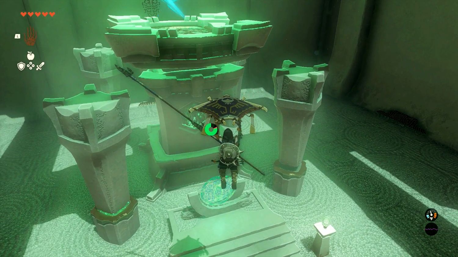 Antes de ingresar al Santuario Morok, los jugadores deben subir a la parte superior de la ruina cercana y descender para encontrar un cofre que contiene un elemento Carga Zonai grande.