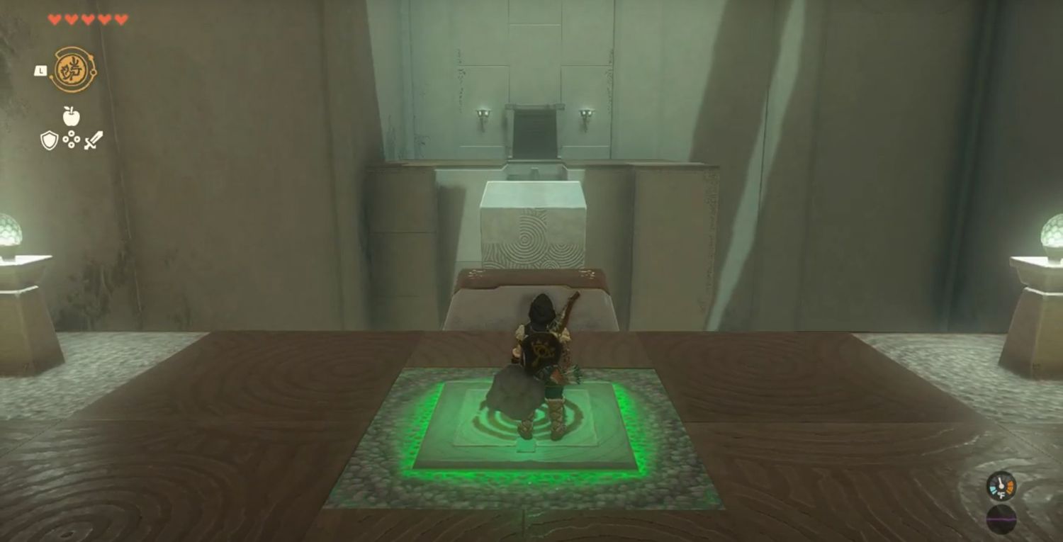 Los jugadores no pueden completar esto Lágrimas del Reino santuario hasta que tengan Recall y Ultrahand en su arsenal de habilidades especiales. Los confiados y altivos pronto serán abatidos por su orgullo cuando ingresen al santuario y vean un bloque que se lanza a través de un amplio espacio, activado por un botón en el que Link necesita pararse. Link necesita pararse en el botón para mover el bloque, luego pararse en el bloque y activar Recall en él para atravesar el espacio.. Los jugadores deben dejar el botón para que el bloque pueda regresar por completo.