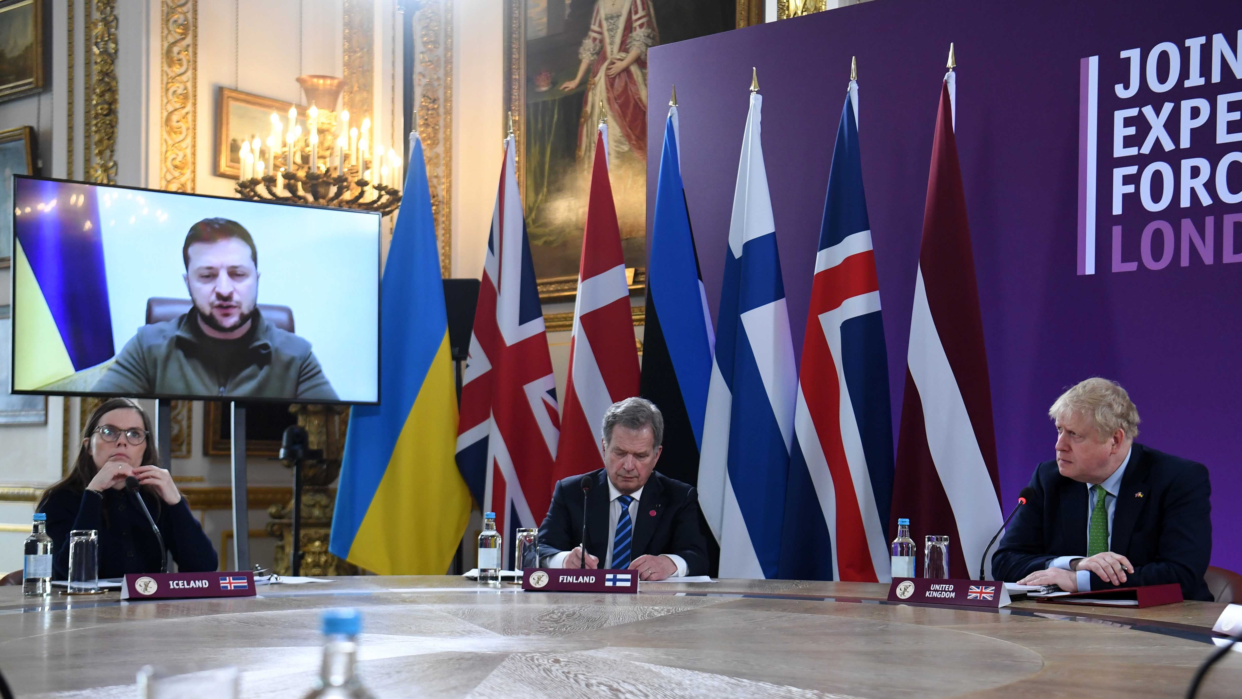Zelenskyy intervino en un encuentro virtual de dirigentes de los países nórdicos y bálticos convocados por el primer ministro británico, Boris Johnson — la llamada Fuerza Expedicionaria Conjunta (JEF, en inglés) –, para tratar sobre la seguridad en el norte de Europa ante la creciente amenaza de Rusia.