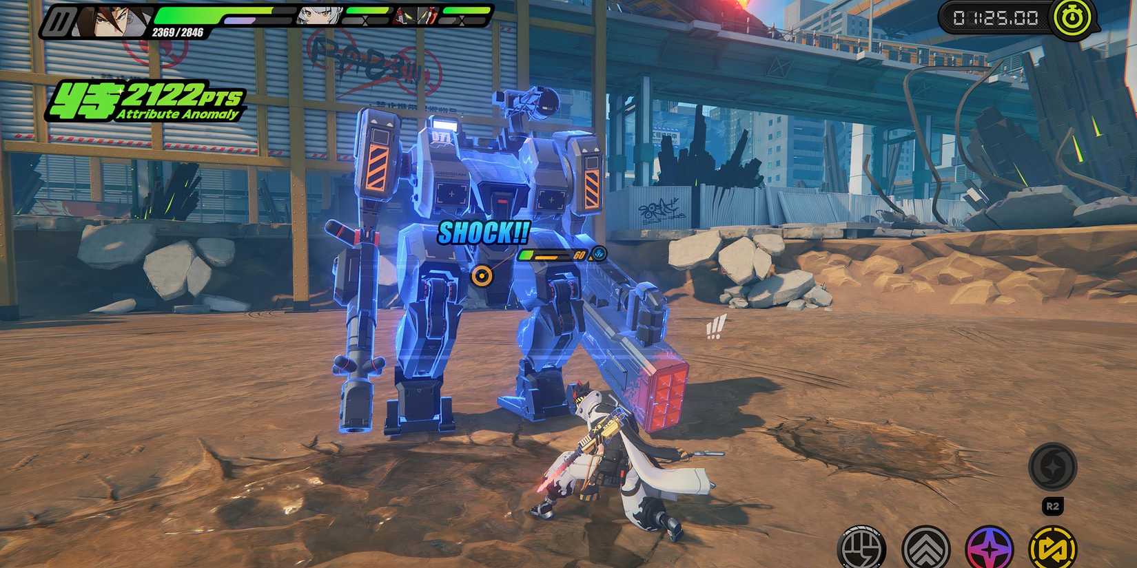 Puedes llevar un registro de la acumulación de anomalías de atributos consultando el símbolo que aparece junto a la barra de salud de un enemigo. Ten en cuenta que si cambias a un agente que tenga un tipo de atributo diferente durante la batalla, comenzarás a acumular esa anomalía de atributos en su lugar. Si logras infligir con éxito dos desventajas de anomalías de atributos diferentes en unos pocos segundos, activarás un poderoso efecto de desorden que inflige una gran cantidad de daño.