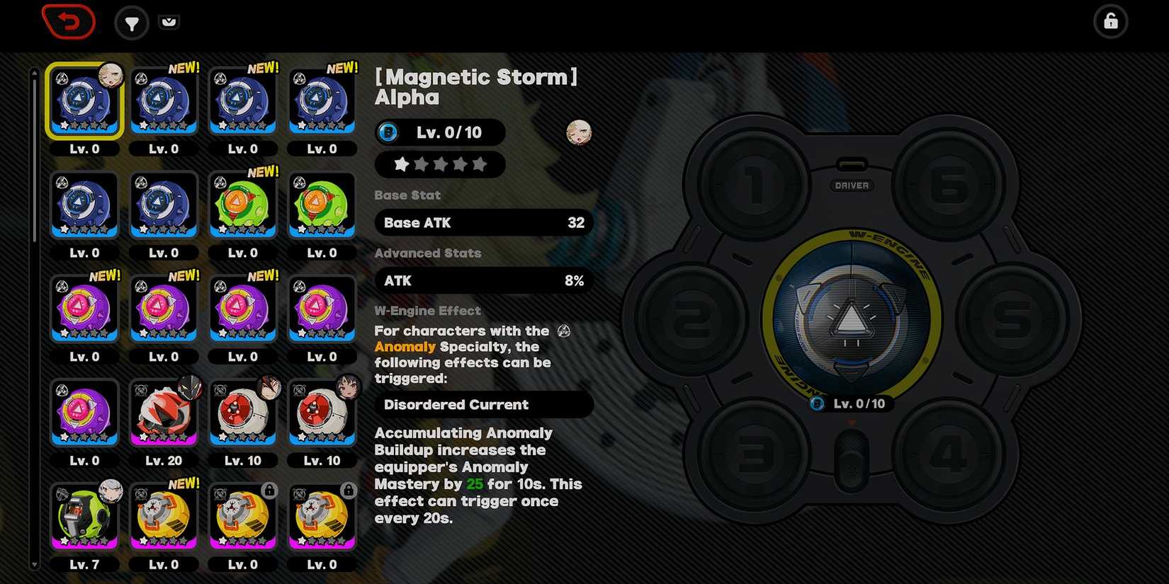 Además de estas mejoras de estadísticas inmediatas, Los W-Engines también proporcionan un efecto W-Engine único que solo puede ser activado por un agente que tenga una especialidad correspondiente.Por ejemplo, el [Magnetic Storm] El efecto de motor W de Alpha solo puede ser activado por agentes con la especialidad de anomalías. Este efecto aumenta la maestría de anomalías del portador en 25 durante 10 segundos al acumular acumulación de anomalías.
