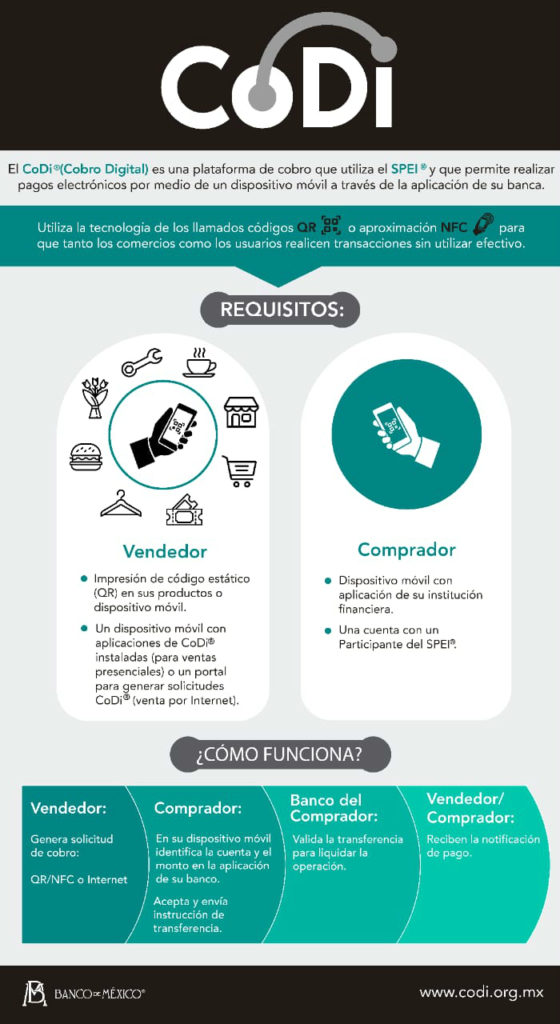 El presidente de la ABM, Luis Niño de Rivera, comentó a su vez que trabajan con el Servicio de Administración Tributaria (SAT) para que al pagar con CoDi se pueda emitir facturas.